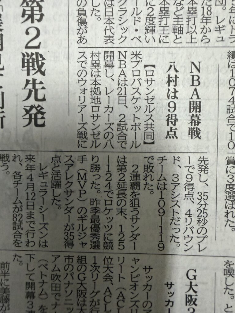 厳しい現実ですが、バスケでは河村選手、サッカーでは長友選手と
