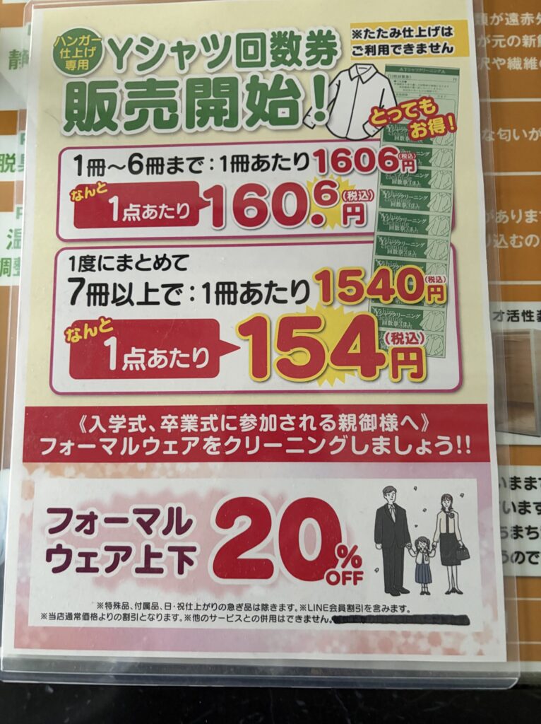 当店ならブラックフォーマルウェアも朝出して夕方仕上がりもO Kです。本店、矢倉店とも朝11時までにお預かりさせていただきますと、夕方5時に仕上がります。また、2月のサービスで、LINE会員様は20%OFFとなっております。是非ご利用ください。